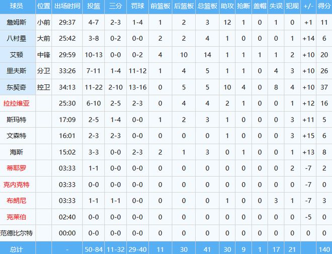 湖人数据如下:
