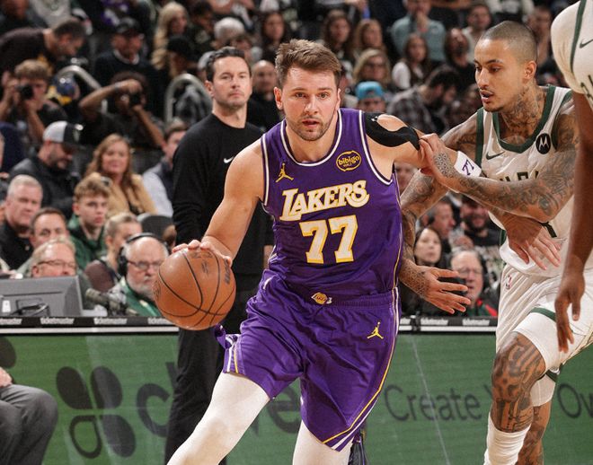 勒布朗·詹姆斯缺阵也无妨,湖人卢卡·东契奇对阵雄鹿展现统治力